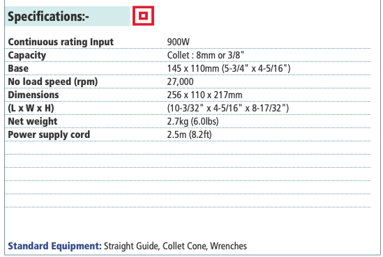 • Makita RP0900 8mm (3/8”) Router (Plunge Type)